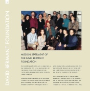132MISSION STATEMENT OF THE DAVID BERMANT FOUNDATIONThe David Bermant Foundation: Color, Light, Motion was established in 1986 to encourage and advocate experimental visual art which draws its form, content and working materials from late twentieth- century technology.Founded by David W. Bermant, who in 1965 began to build a collection that has become the preeminent private assemblage of work from this genre, the Foundation is devoted to fostering the efforts ofartists working with non-traditional materials. These materials include physical sources of energy, light and sound, which are used in works that question and extend the boundaries of the visual arts.The Foundation seeks also to cultivate public awareness of and appreciation for the synthesis of fine art and technology by supporting artists and institutions involved in the presentation, study, commission, collection, or exhibition of such work.DaviD Bermant founDation