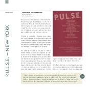 EXHIBITIONSExcErpt from “today’s machinEs”P.U.L.S.E. CatalogBy Tom Finkelpearl, CuratorThe parameters of this exhibition as stated in the title, “People Using Light, Sound, Energy,” needs a bit of clarification. While all of the artists fall within the stated categories, there is no work that is solely sound or light. These two categories are now important sub- sets of visual arts and music, and there have been major exhibitions in both fields in recent years.P.U.L.S.E. is essentially a sculpture show, artists who create sculptural objects from light, sound, and energy. Light art often tends toward painting, while sound art verges on music. In fact, a more accurate title might be Sculptures Using Light Sound Energy. The only thing constant in P.U.L.S.E. is change.The artists in P.U.L.S.E. do not share a common attitude toward machines and computers. In some work we see the power and brutality of the machine, in others we see the beauty. However, all of the artists have turned to technology (whether low-tech or high- tech) to express themselves. The work seems to divide into three categories: artists who see the power and danger of the machine, those who stress the beauty of technology and those who do not address these issues, but simply explore potential uses of newlyacquired techniques. For these artists, technology is a means to an end, not the subject of their work.Steve Barry, Alice Aycock, Jean Tinguely, and Takis create machines that are at once violent and beautiful. This sort of work appeals to those who admire and/“I have chosen to concentrate a selection of works, so that they represent one facet of the many trends now evident in today’s art. The facet I have chosen is that of “technological art,” which in simple terms, is the use of today’s scientific discoveries—be they materials, relations, or principles—to produce objects of art.”76P.U.L.S.E. – NEw York